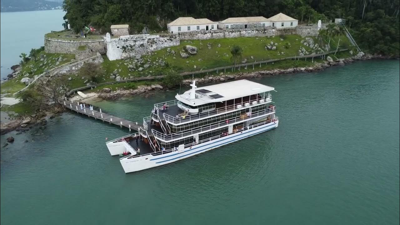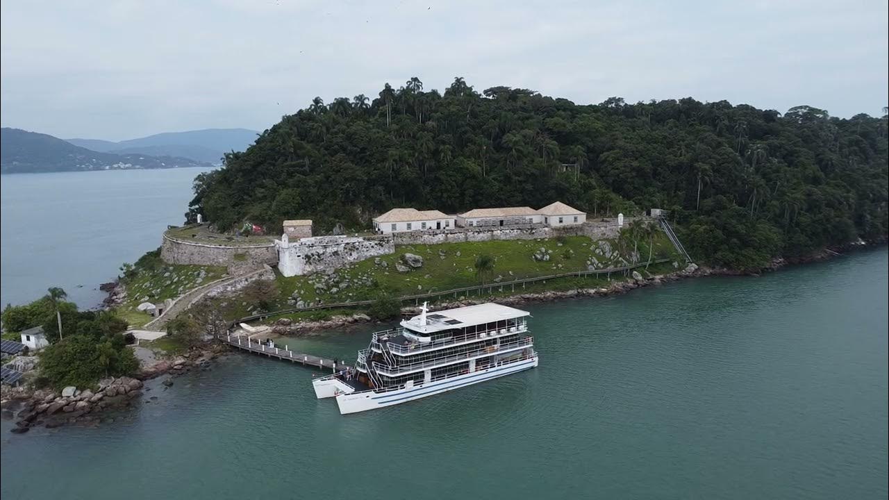 Passeio iniciando na avenida Beira-Mar Norte, seguindo em direção às ilhas Guarazes e almoço com foco em networking.